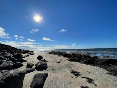 Un lugar muy poco conocido por lo que a penas hay gente. Es muy relajante: arena, piedras volcánicas, hierva, patos, conchas etc. Un lugar perfecto para desconectar y pasar el rato