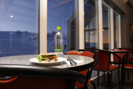 雪原中的溫馨小餐廳,可以遠眺後方的冰河。